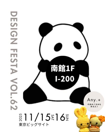 お知らせ 2025-09-26 最終更新日時 : 2025-09-26 Cinnamon@nana まず27日は京橋です 秋晴れになる事を願いつつ1日楽しみたいと思います♪ デザフェスのお知らせ 少し先になりますがブースNo.が決まりました! ぱんだのシナモンデザフェスデビューです♪ 年内はいろいろな出展がたくさん! 頑張ります(^ ^)