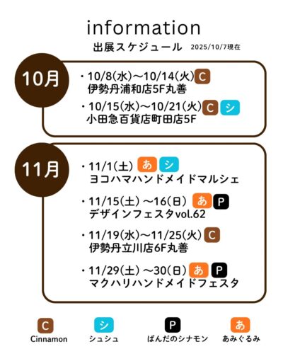 今秋のスケジュール一覧