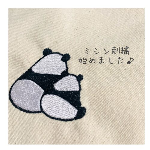 私が描いたぱんだを刺繍ミシンで仕上げています♪