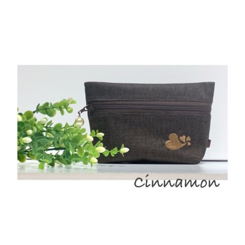 Cinnamonのロゴを刺繍ミシンで刺繍をしてポーチにしましたよ!