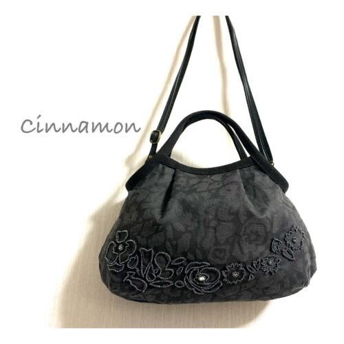 黒地にお花柄の地模様に合わせてビーズ刺繍をしました