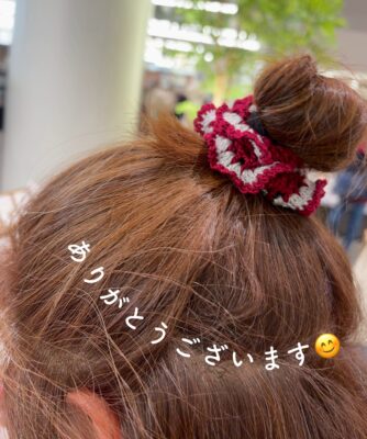 シュシュ着画 2026-04-05 最終更新日時 : 2026-04-05 Cinnamon@nana お客さまが見せに来てくれました♪ ボブくらいの髪型のハーフアップ! シュシュはフリルが小さめのタイプです すごく可愛かったです(^ ^) わざわざ見せに来てくださって嬉しかったです許可をもらって撮影&掲載♪ ありがとうございました!!